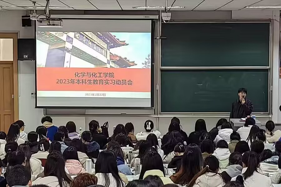 于综合教学楼301教室进行教育实习动员大会。学院副院长刘鹏、2020级辅导员蒋君以及2020级全体师范生参加会议,会议由蒋君主持。