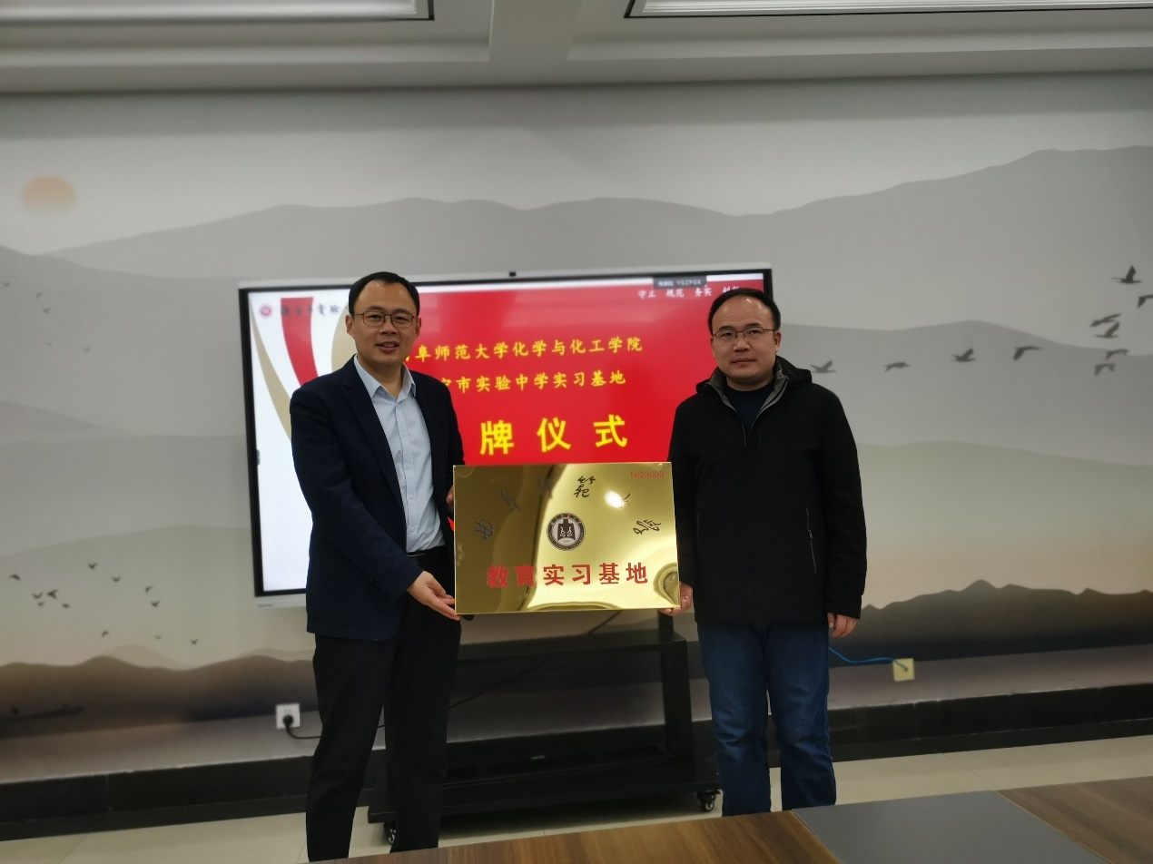 教育实习基地签约授牌仪式。济宁市实验中学副校长陈冲,部分化学教师参加了此次仪式。