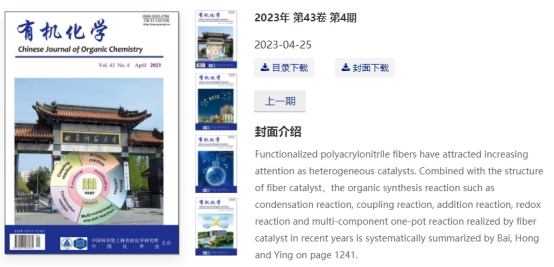 近日,应安国教授团队综述论文“功能化聚丙烯腈纤维促进有机反应的研究进展”发表在国内知名SCI收录杂志《有机化学》上,并被选为第一封面刊登。研究生白林盛为论文的第一作者,应安国教授为通讯作者,天美传媒