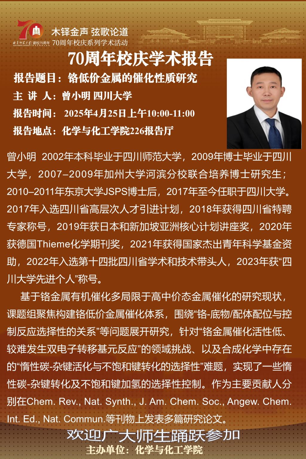 【4月25日】校庆70周年天美传媒 系列学术报告二