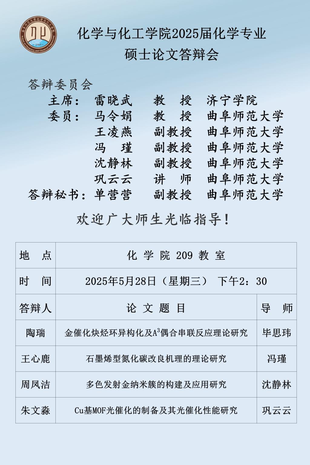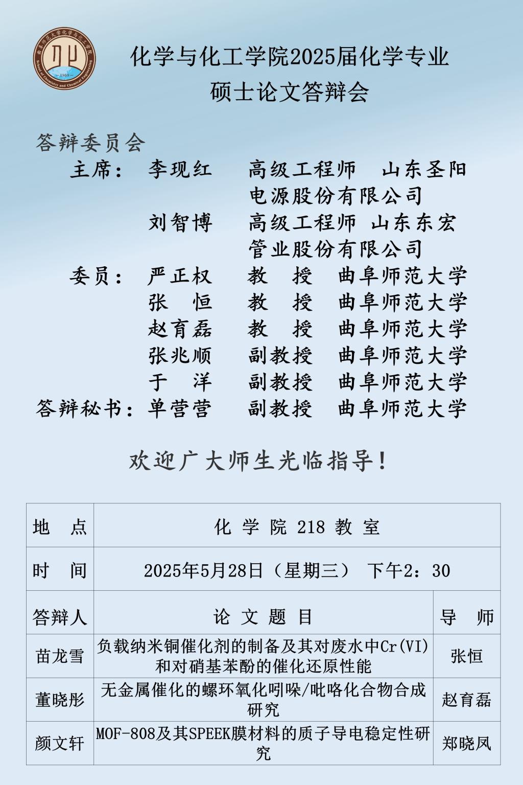 【5月28日】2025届硕士论文答辩会公告