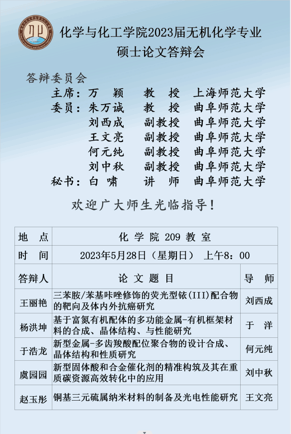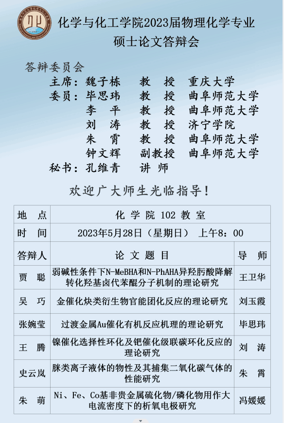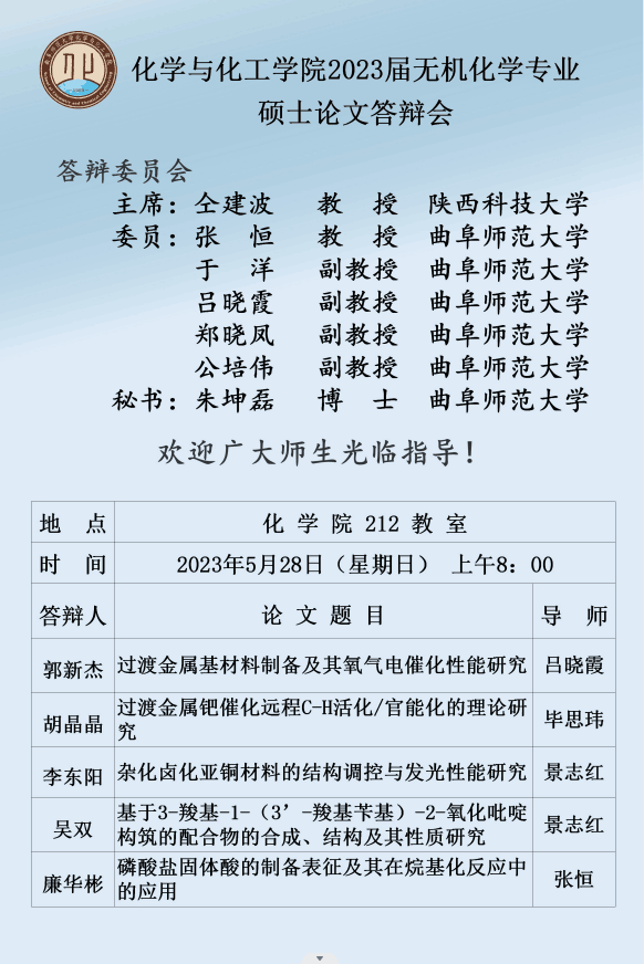 2023届材料与化工专业硕士论文答辩会