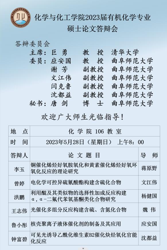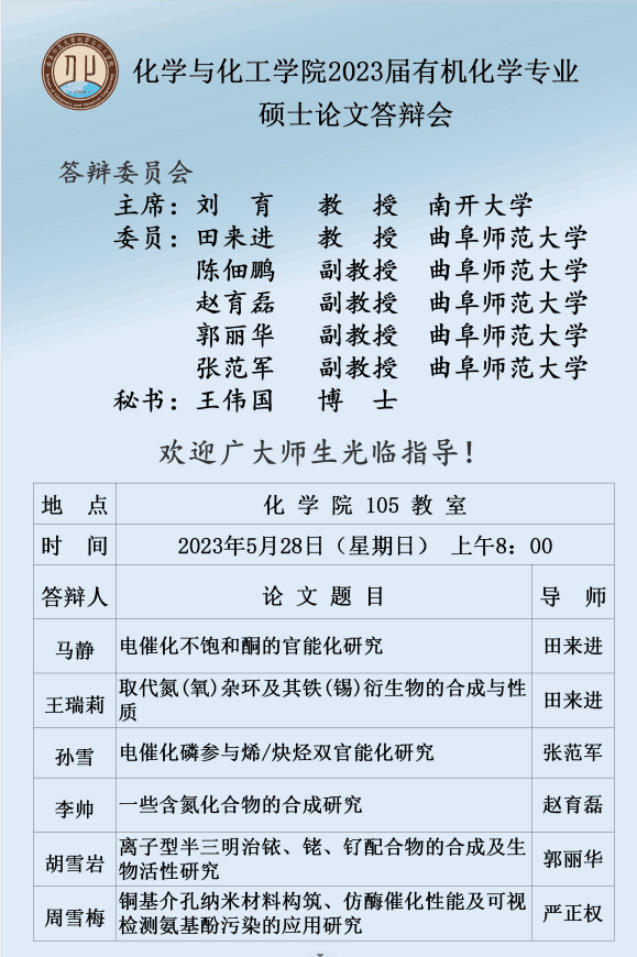 天美传媒 2023届化学专业硕士论文答辩会