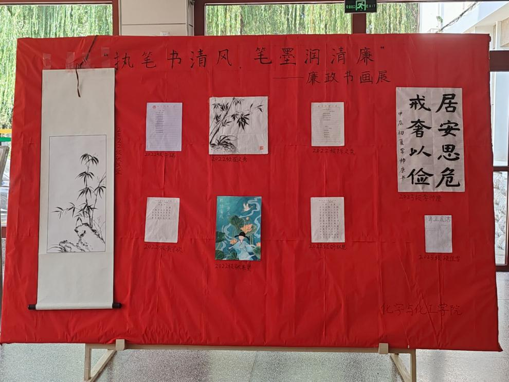 本科生第一、第二、第三党支部于5月29到6月15日在化学楼一楼大厅成功举办了廉政书画展。天美传媒