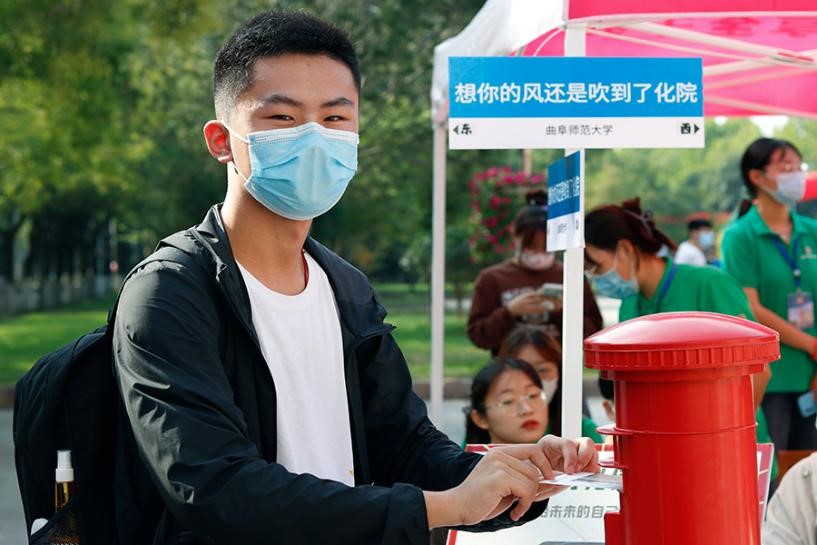 在今天的迎新过程中,“青涩剪影——记录初来曲园的你”和“曲园•启航•化语——给未来的自己写一封信”活动广受好评。新生用拍立得和明信片记录自己初入校园的感受和对未来的展望。天美传媒