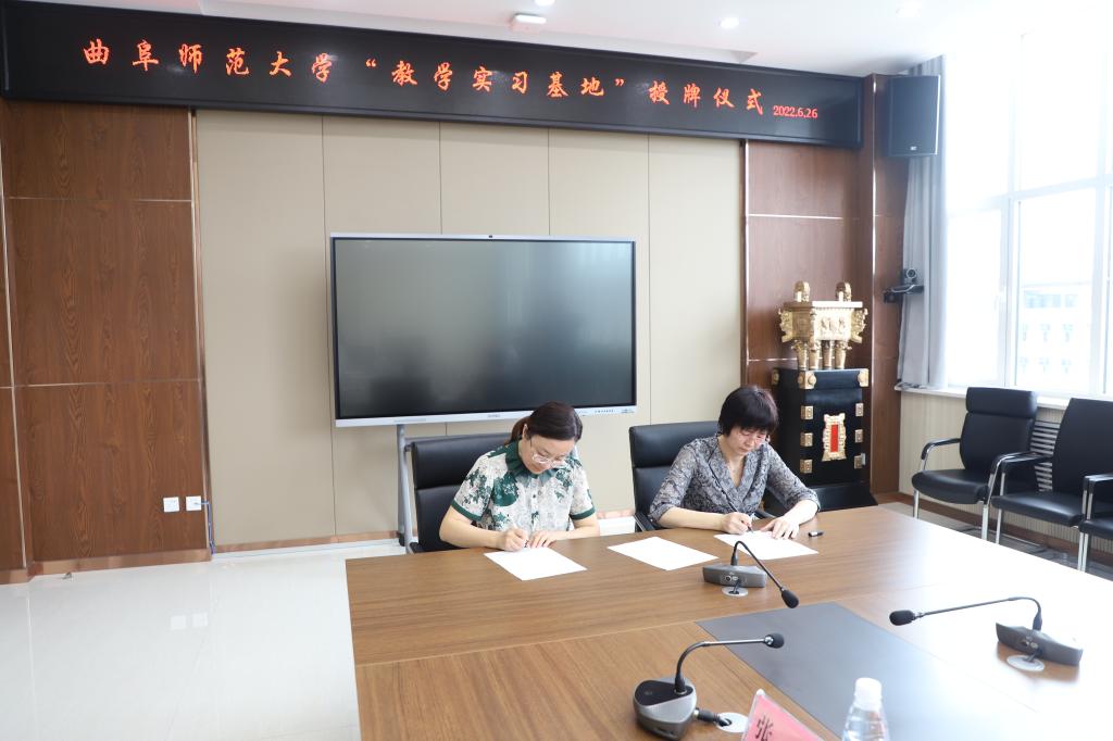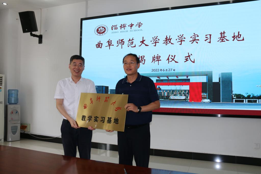 党委书记赵琪、院长冯媛媛、副院长刘鹏赴淄博联系教育实习事宜,代表学校和淄博齐盛高级中学、淄博中学和淄博市第十八中学签订教育实习协议并为教育实习基地挂牌。淄博市教育局的有关领导和三所中学的校领导参加了挂牌仪式。至此,和天美传媒