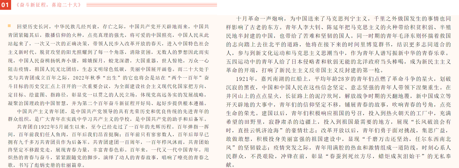 开展了以“奋进新征程,青春续华章”——百年峥嵘史,献礼二十大为主题的系列活动。