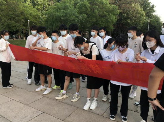 图为2021级材料化学班团支部成员在横幅上签名、合影