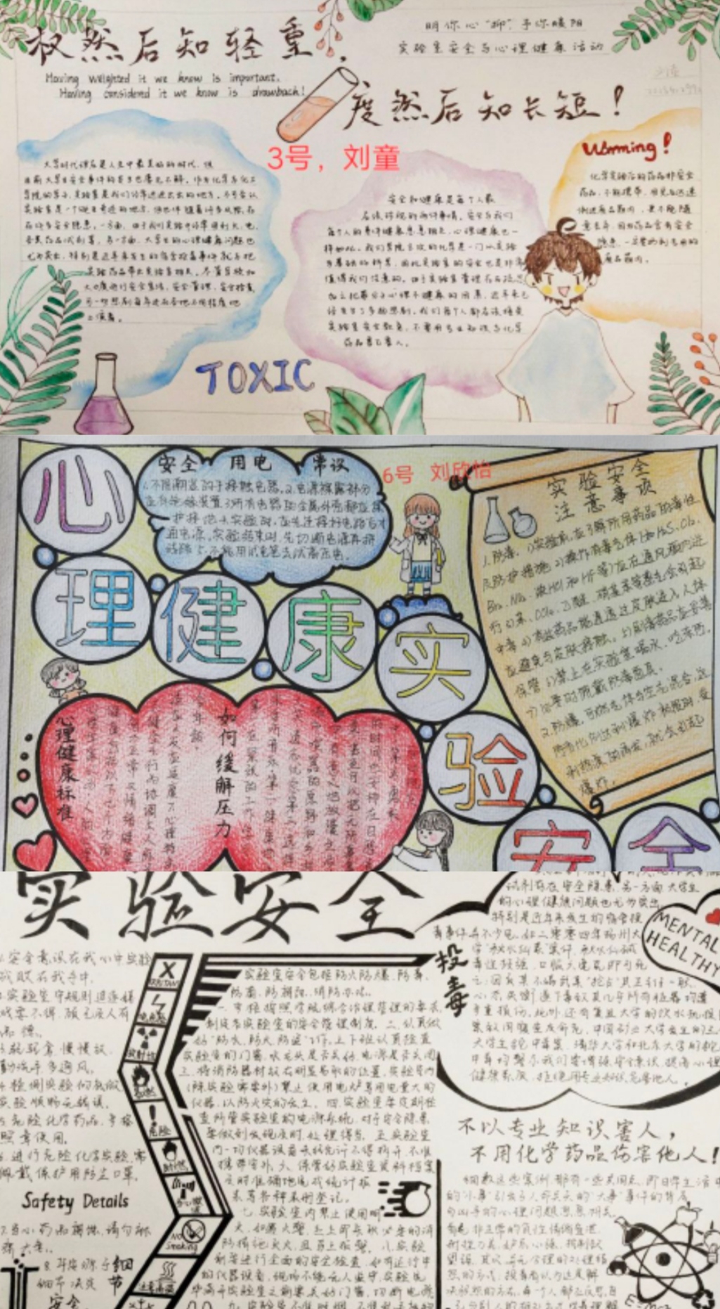 本次活动有两个环节:一是由2020级各班负责人组织观看实验室安全教育视频。各班同学认真观看视频并从中学习实验室安全知识。视频结束之后各班心理委员进行安全教育思想汇报,进一步巩固安全教育成果。二是举办实验室安全手抄报及海报设计比赛,各班同学积极报名参加,参赛人员利用自身的绘画功底、丰富的想象力完成本次手抄报及海报的设计。比赛过程中涌现出了大批优秀作品,这些作品与本次活动主题完美契合,充分体现了大家对本次活动深刻的理解与认识。经过投票,最终评出了一等奖4名,二等奖8名,三等奖12名。
