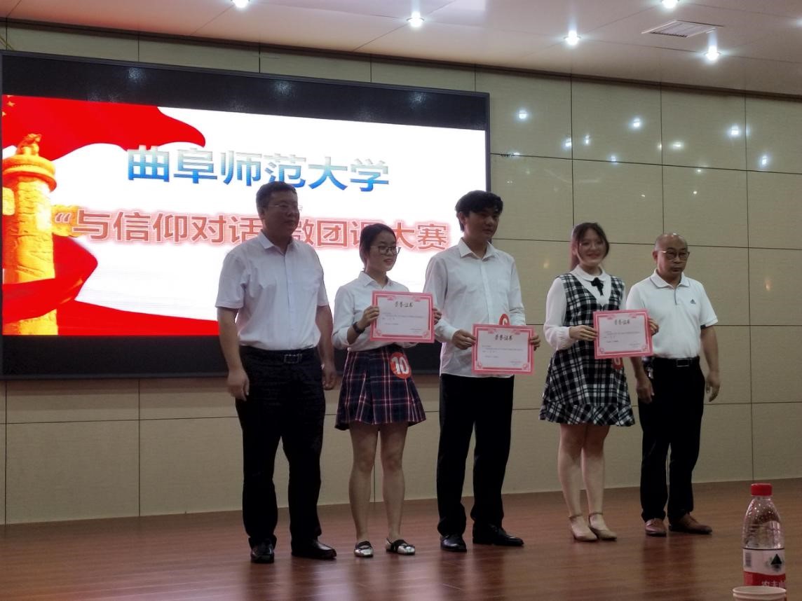贺丹阳团队和刘晓洁团队赶赴日照参加决赛,分别荣获三等奖和优秀奖的好成绩。比赛中,两组选手围绕五四精神、热点时事、青年担当,并结合中国共产党成立70周年和五四运动100周年时间节点,进行了即兴演讲和微团课的展示。