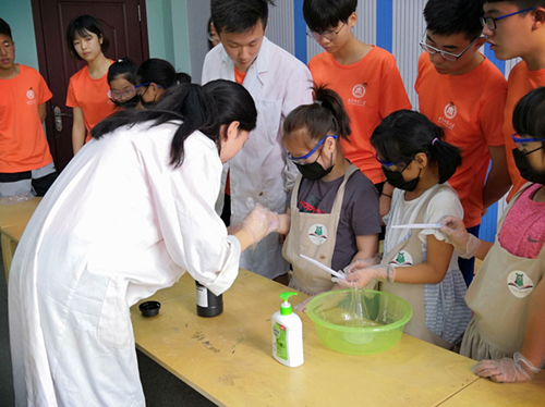 实验过程中,在小组成员的带领下,小朋友们亲自动手完成了实验,在最后课堂总结当中,小朋友们对实验开始前小组成员提出的问题进行了很好的回答。通过这堂课她们了解到了很多化学知识,也展现出对化学实验的浓厚兴趣。第一堂课圆满成功。
