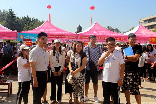 迎新工作在科技实验大楼前拉开帷幕,全体学生干部和志愿者齐聚孔子文化广场,迎接来自祖国各地的2018级新同学们。