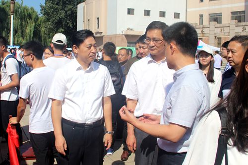 学校校长张洪海及相关部门有关领导亲临现场,指挥协调迎新工作。学院党委书记赵琪,党委副书记孙俊华,团委书记孙金玲,辅导员王亚平及新生辅导员助理陪同视察。孙俊华向张校长介绍了天美传媒