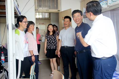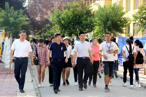 党委书记赵琪,党委副书记孙俊华,团委书记孙金玲,辅导员王亚平、刘鹏,在团委副书记孙荥及主席团成员的陪同下,前往北公寓,进入新生宿舍,与新生及新生家长亲切交流。