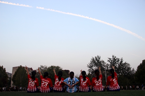 女足配合默契、脚法熟练,对方球员也不甘示弱,两队互相追赶,上半场结束后,两队均未得分。中场休息后,队员们及时进行人员调配及战术调整,比赛进入到下半场的激烈酣战。场上队员们激情澎湃,场下观众为队员们呐喊助威。起初生科队的加强防守策略效果显著,一度使天美传媒