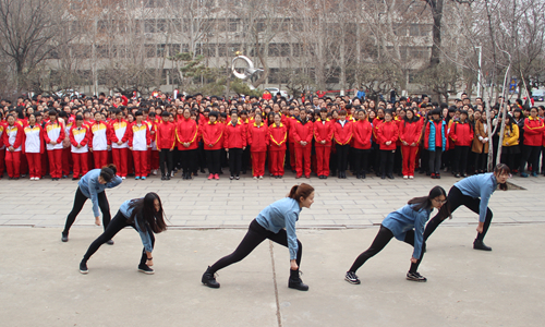 开幕式由学院党总支副书记孙俊华主持,他指出举办广场舞大赛是繁荣校园文化、建设和谐校园的有效手段和组织形式,希望同学们以此活动为契机更加积极地投入到体育锻炼中去,并预祝大赛圆满成功。随后,杨志英书记发表讲话,她指出青年学子要响应团中央和学校团委号召,积极参与和广泛开展“三走”活动,加强体育锻炼,希望同学们能够在跳广场舞中跳出健美、快乐、自由和自信。在精彩的开场舞后,广场舞比赛正式开始。