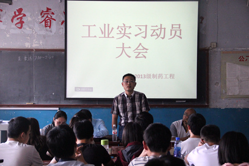 在化学楼210室举办2013级工业实习动员大会。制药工程教研室主任赵先恩以及赵新峰、李国梁、朱霄老师出席并做实习动员指导。