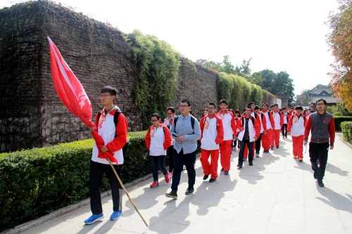 时值深秋,同学们统一身着系服,精神抖擞,为此次徒步游“三孔”活动做了充分的准备。天还未亮,便已在化学楼前整装待发。在辅导员张乾坤及助理范川和大一各班班长的带领下,四百余人的队伍整齐划一,井然有序,大部队于早晨八点到达孔庙门前观看开城仪式。在三个小时的游访中,同学们认真听取导游讲解,与导游探讨孔家文化,收获颇丰。中午十一点,全体人员进行合影留念,至此,2016年新生游“三孔”活动圆满结束。