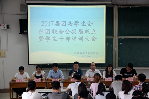 2017届团委学生会社团联合会换届成立暨学生干部培训大会在综合楼206教室成功举办。学院党委副书记孙俊华,团委书记胡乃永,辅导员张乾坤、王亚平出席换届大会。参加此次会议的还有2016、2017届主席团成员,2015级、2016级班长、团支书,各部部长、副部长。会议由团委书记胡乃永主持。