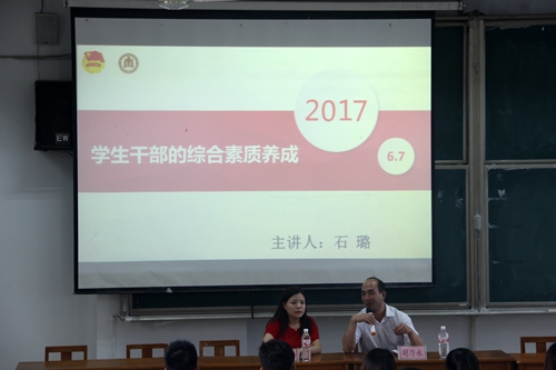 会议邀请学校团委石璐老师对学生干部进行培训。她首先介绍了全国学联、学生会的本质和基本义务,接着从哲学思考、角色定位、工作职责、应具备的素质和应处理好的关系几个方面展开了指导。通过一个个鲜活生动的实例,一条条发人深省的名言警句,将学团工作讲解的细致全面,同学们听得认真投入。最后,她送给同学们八个字:青春、向上、满载、归航,在一阵阵热烈的掌声中培训圆满结束。