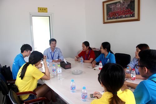首先工作人员对实践队员们进行了相关的安全培训,熟悉在该公司实践应注意的问题。随后在工作人员的带领下,全体队员参观公司,了解生产车间布局及公司整体布局。通过参观公司,改变了队员们以往对化工厂重污染、安全没保证这种先入为主的印象,从而有了更加深入而正确的认识。