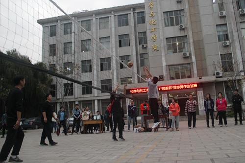 “迎新杯”排球师生友谊赛在院楼前广场拉开帷幕。党委副书记孙俊华亲临现场观摩比赛,团委书记胡乃永及学院众位老师参加比赛。