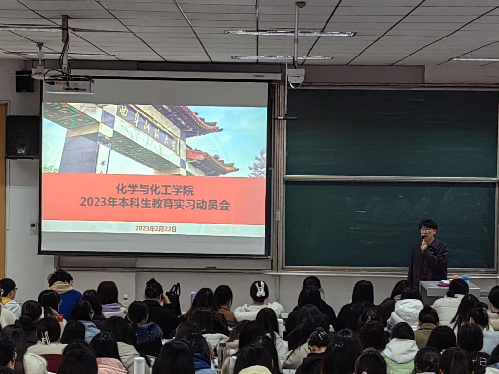 分别于化学楼209会议室和综合教学楼301教室召开了2023年教育实习动员大会。会议由2020级辅导员蒋君主持,学院副院长刘鹏发表讲话,全体教育实习指导教师和2020级全体实习生参加了本次会议。