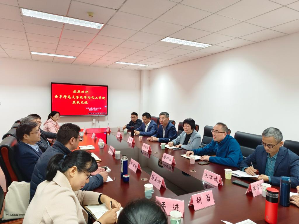 党委书记赵琪、院长冯媛媛,工会主席岳明波、实验中心副主任李言信、教务员胡蕾、化工教研室教师朱万诚、张恒、张兆顺等一行,与济南大学化学化工学院领导团队进行了深入交流。