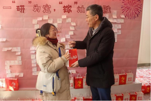为备考的学生送上暖心的考研大礼包,同时在学院大厅摆出展板,学子可以写下自己的青春梦想与对自己的寄语。随后学院领导和老师为考研学子送上温暖亲切的祝福和嘱咐,为考研学子加油助威,给予他们自信和力量,坚定了同学们“考研必胜,一定上岸”的决心。