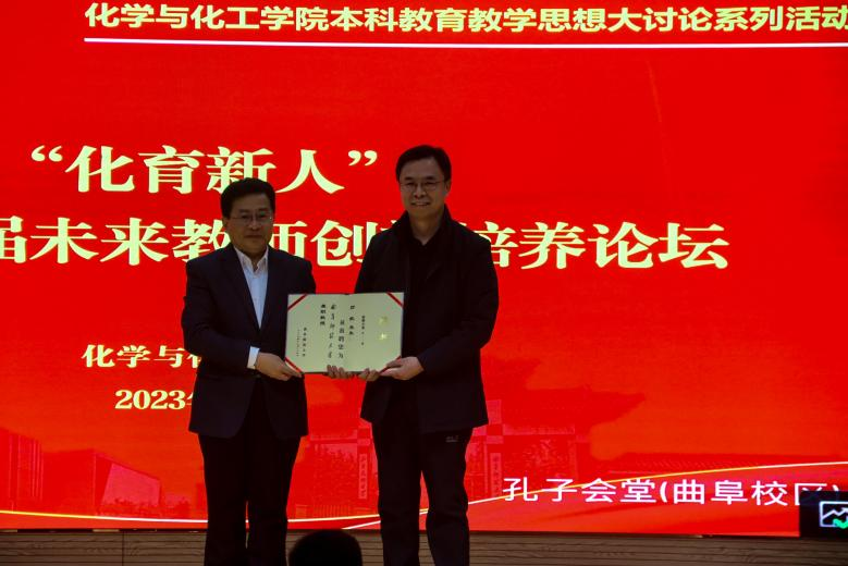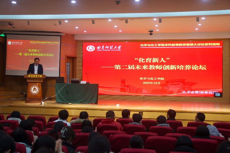“化育新人”第二届未来教师创新培养论坛于孔子会堂举行。山东省日照实验高级中学校长厉凯、日照市教育科学研究院高中化学教研员兼任日照实验高中首席化学老师赵锋应邀参加论坛,论坛由天美传媒