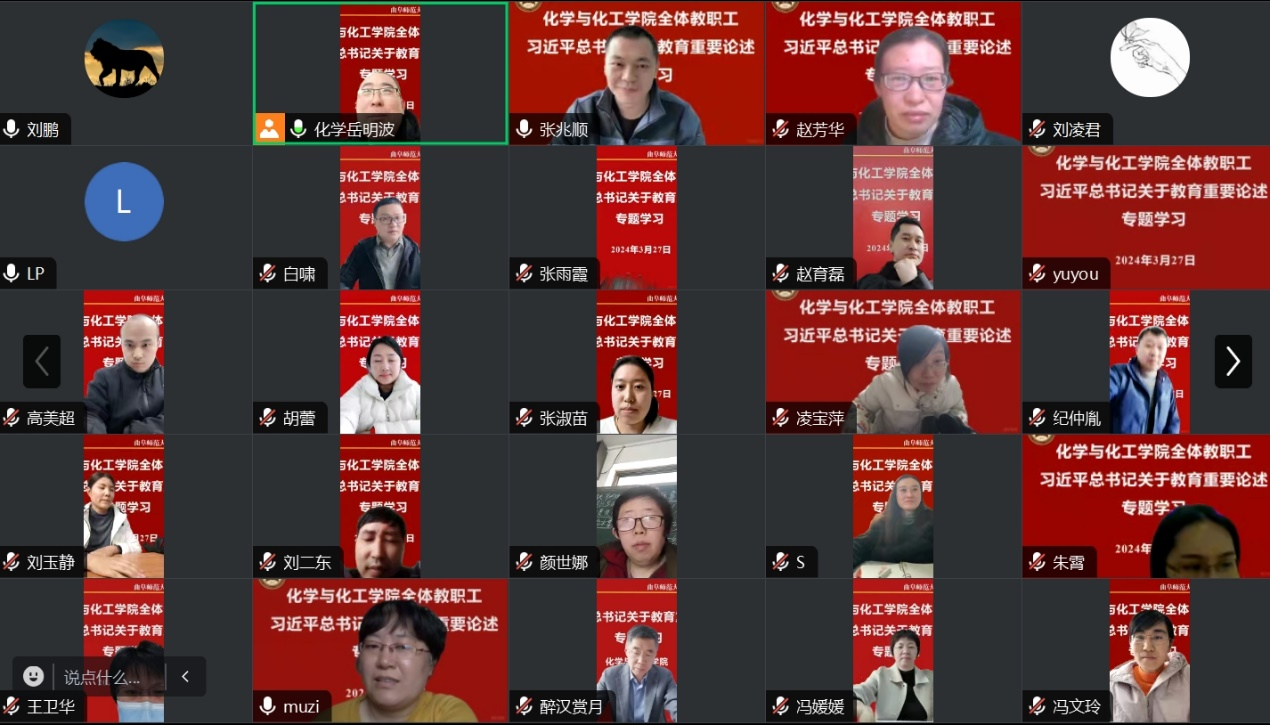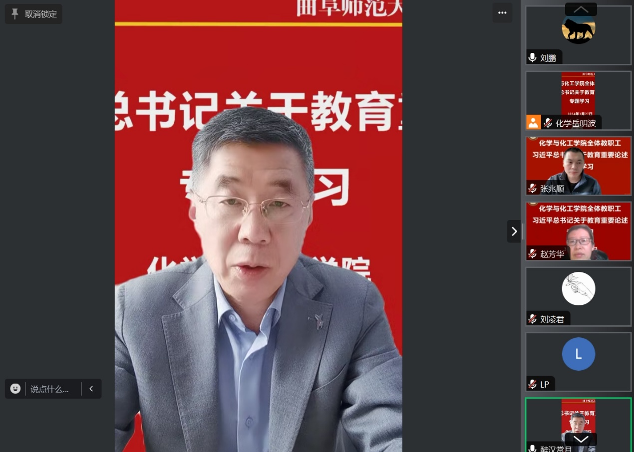 党委书记赵琪指出,本次学习是学院贯彻落实学校2024年总体工作安排的举措之一。习近平总书记多次强调,要坚持教育者先受教育,努力成为先进思想文化的传播者、党执政的坚定支持者,更好担起学生健康成长指导者和引路人的责任。希望老师们保持学习习近平总书记有关重要讲话精神常态化,做有理想信念、有道德情操、有扎实学识、有仁爱之心的“四有”好老师,为培养出更多优秀的毕业生,为学院的高质量发展,为实现教育现代化作出自己的贡献。