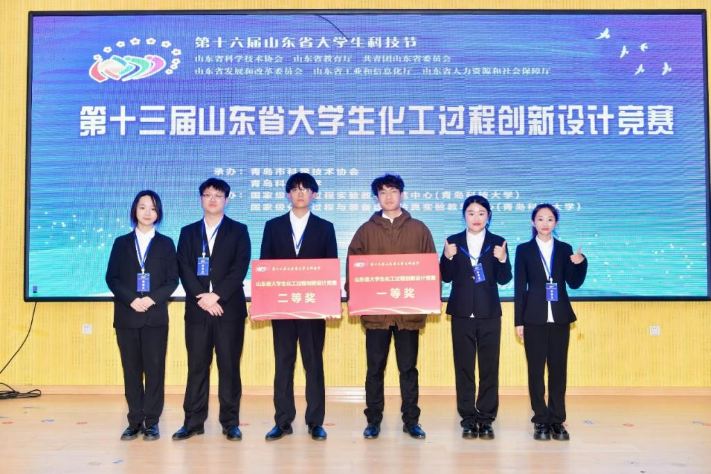 2022级化学工程与工艺专业本科生刘昇、于雯娇、苏艺凡团队获一等奖,刘世超、王一斐、史一繁团队获二等奖,指导教师均为化工教研室王凤翔老师。