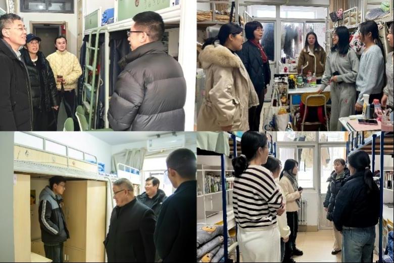 党委书记赵琪、院长冯媛媛、党委副书记孙金玲、副院长李平、刘鹏、全体辅导员老师一同前往宿舍进行走访。