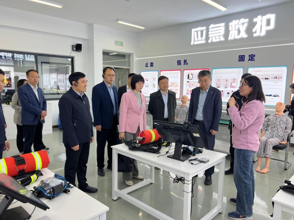 在山东化工技师学院党委书记陆洋、院长伊文涛等陪同下,考察团先后参观该校化工装备综合实训室、世界技能大赛化学实验室技术项目中国集训基地、山东省化工生产安全实训基地和化工生产实训中心以及应急救援实训基地。赵琪书记对山东化工技师学院在实训基地建设、技能人才培养及产教融合领域的成果表示高度赞赏,认为其"以赛促教、以训强技"的实践模式为应用型人才培养提供了宝贵经验。