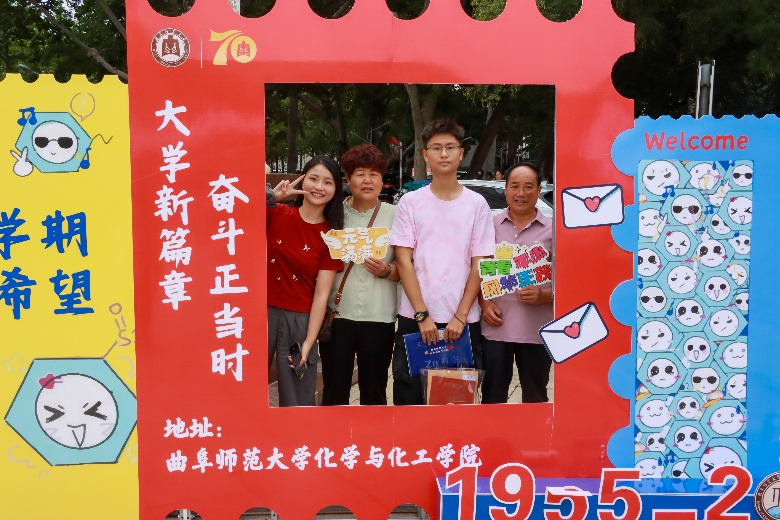 图为新生在拍照点打卡拍照