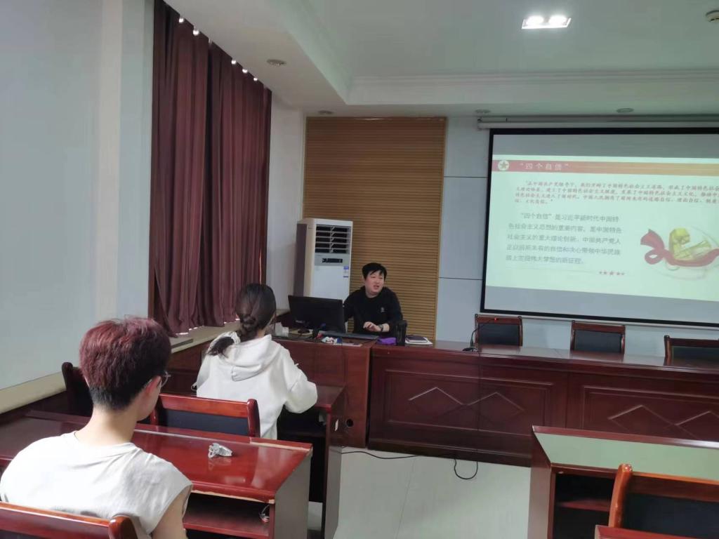 活动伊始,冯德浩强调“四个自信”的重要性并介绍“四个自信”的内涵。随后,冯德浩带领支部成员学习新时代的中国如何坚定“四个自信”,指出要想实现中华民族伟大复兴和中国特色社会主义事业作为面向未来的事业,需要我们持续推进中国特色社会主义的道路自信、理论自信、制度自信、文化自信,彰显中国特色社会主义的巨大优越性和强大生命力。