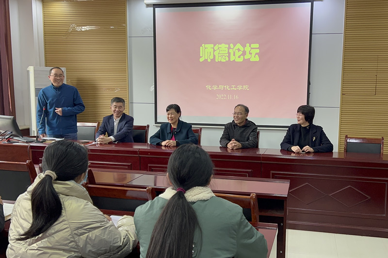 在化学楼226会议室举行“师德教育”座谈活动。学院党委书记赵琪、院长冯媛媛、荣休教师苗深花、孔德生以及40多位青年教师和学生参加,会议由工会主席岳明波主持。