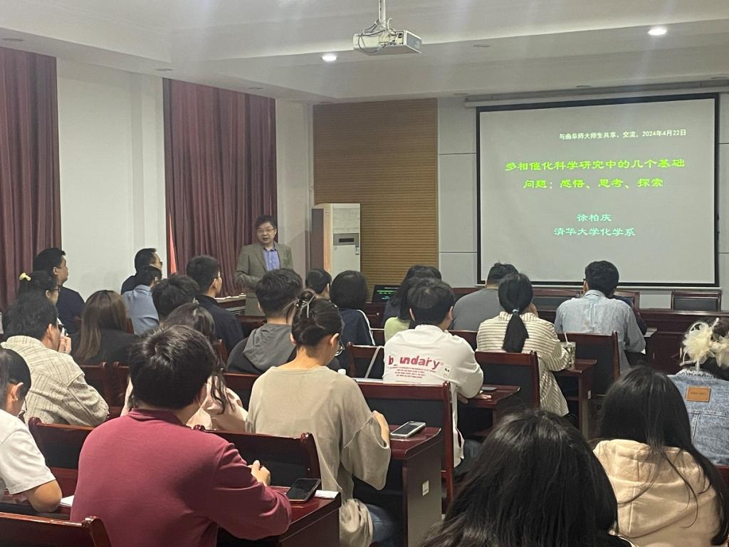 2024年4月22日,清华大学徐柏庆教授受邀访问学院,并为全院师生作了题为“多相催化科学研究的几个基础问题”的学术报告,报告由天美传媒