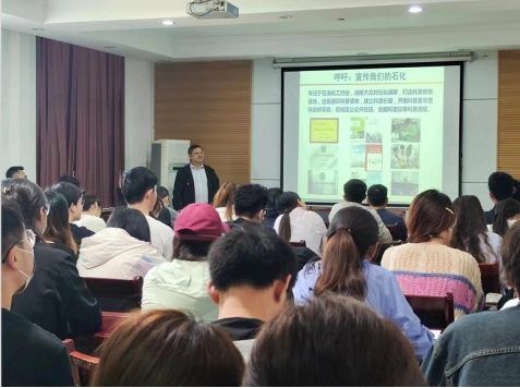 纪红兵教授通过自身在学习与工作中对芳烃仿生催化氧化科学基础问题的思考和探索,重点介绍了仿生催化氧化自由基调控、同位素及KIE实验证实氧传递路径和氧气活化方式,并分享了其课题组研究成果在山东建立多套生产装置的最新应用进展。学院师生对纪教授的报告内容十分感兴趣,与纪教授进行了热烈的互动和交流。