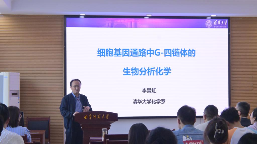 特邀中国科学院院士、新基石研究员、清华大学化学系教授李景虹院士在化学楼226报告厅进行专题学术报告,报告题目为:细胞基因通路中G-四链体的生物分析化学。报告会由山东省泰山学者青年专家夏莲教授主持,学院师生代表100余人参加。