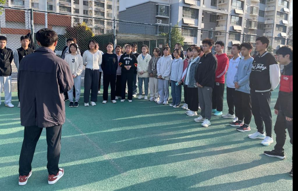 田径队凝聚力,4月8日清晨,辅导员蒋君前往训练场地观摩田径队训练课。