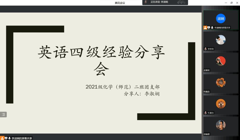 图为2021级化学(师范)二班团支部组织开展英语四级经验分享会
