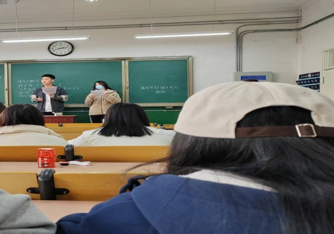 2022级制药团支部邀请2021级制药班马超与梁荣华开展四级经验交流会,两位同学讲述了英语四级考试的复习经验,分享自己在备考时的经历,同时对考试题型进行分类讲解。同学们认真听讲,反响热烈。