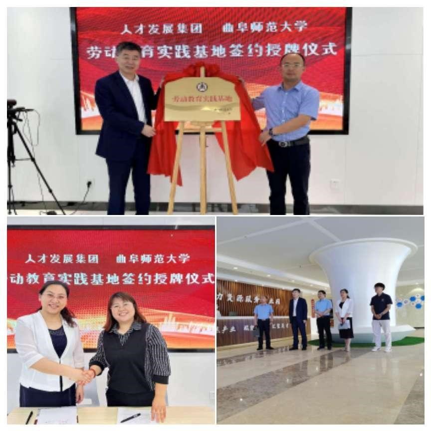 赴潍坊滨海人力资源服务产业园举行劳动教育实践基地挂牌仪式。潍坊滨海人才发展集团有限公司执行董事慈海鑫、潍坊滨海人才发展集团有限公司产业园运营部部长李晓菲,天美传媒