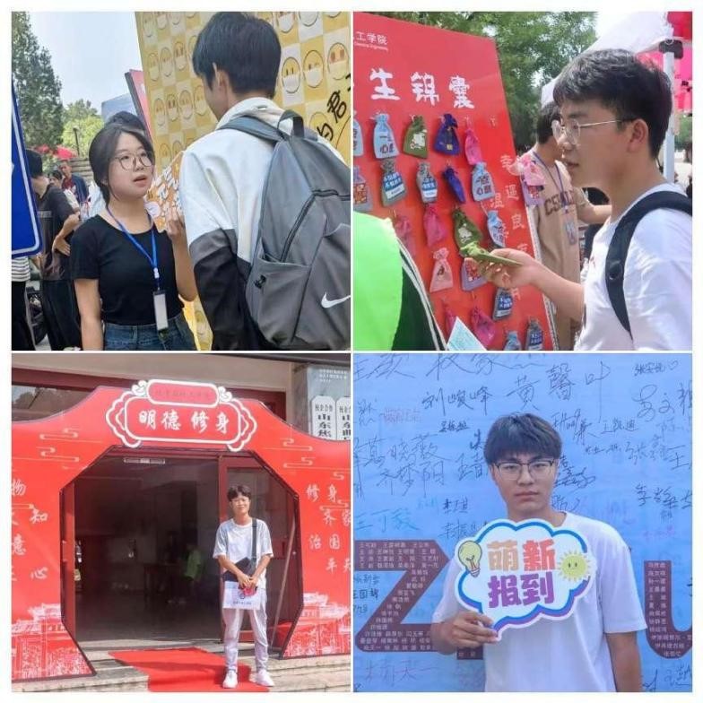 迎新工作如火如荼,为让每一位来到化院大家庭的新同学感受到化院的温暖,学院提前为新生准备好了新生锦囊。锦囊里包含着老师以及师哥师姐们对新生的建议,帮助新生们更好适应大学生活;“欢Ag Zn Cu学院打卡墙以化院所有新生姓名为组成,留下了许多萌新来大学的第一张照片,为他们留了珍贵的回忆。在院楼门口放置明德修身门,意寓走进学院即要明明德、修己身,勉励同学们厚植报国之志,努力成长为堪当大任的时代新人,为新生烙下文化印记鲜明的开学记忆。