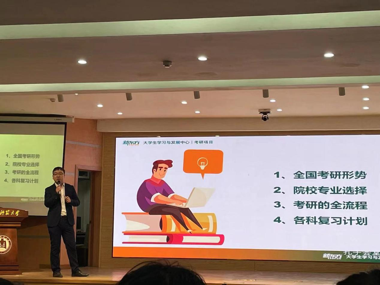 于12月21日、12月23日召开2025年考研规划指导讲座,2021级全体学生参加。全国“考研联盟”分析师、“新东方”在线首席考研咨询规划师郭涛为本次讲座的主讲人。