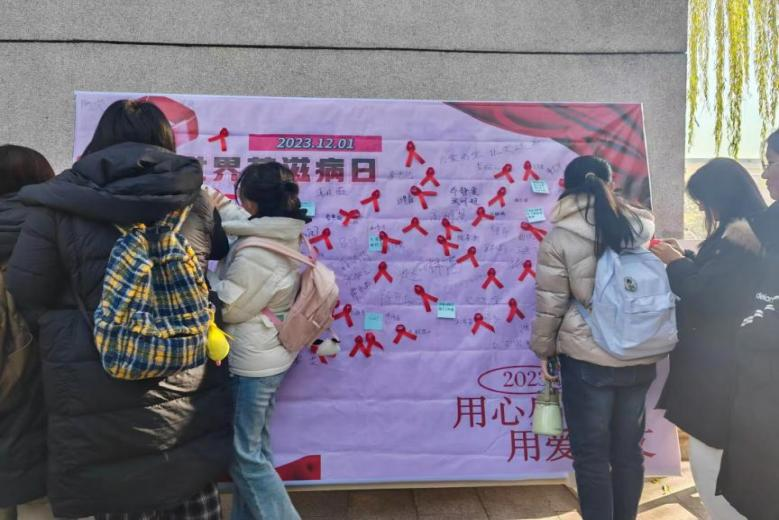 活动以“用心感受,用爱防艾”为主题,设置留言板,制作红丝带,并在活动当天发放给过往同学,鼓励他们将红丝带佩戴在胸前或者粘贴到活动板上,并签名和留言,用以表示对艾滋病人的关心,同时也提高同学们对艾滋病的重视程度,活动当天同学们积极参与签名并在活动板上留下自己的鼓励与祝福,通过留下笔迹、让红丝带飘扬的方式,传递关爱和支持的力量。