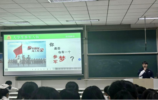 于3月31日在综合楼401教室开展征兵入伍宣讲活动。本次活动由2023级退伍学生代表朱子航主讲,化院2023级全体学生参加。