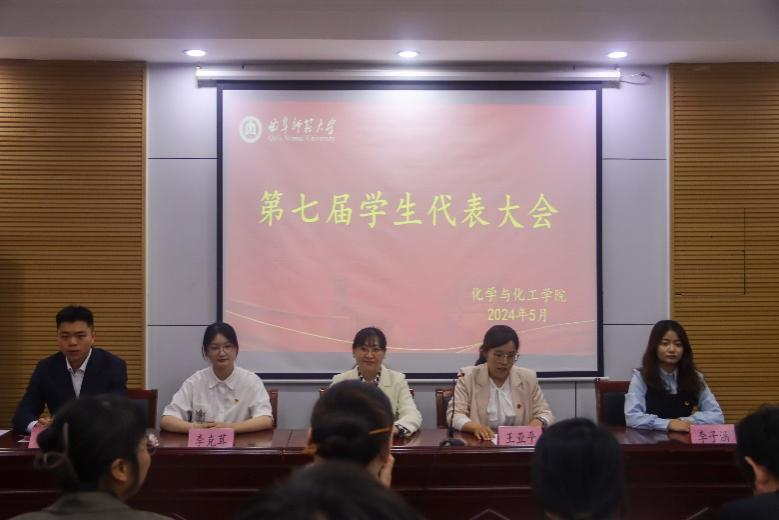 第七届学生代表大会在化学楼226召开。学院党委副书记孙金玲出席会议并致辞,学院团委书记王亚平、全体辅导员及全体学生代表参加会议。会议还邀请校学生会副主席李子涵、李克茸列席。大会由学院团委书记王亚平主持。