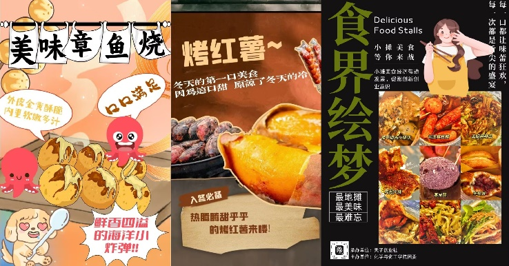 此次海报设计大赛,在凸显小吃摊的特色和创业理念的同时,充分展现了学生个性风采与创新能力,引导和帮助同学转变传统就业观念,培养创新意识,提高创新创业能力。